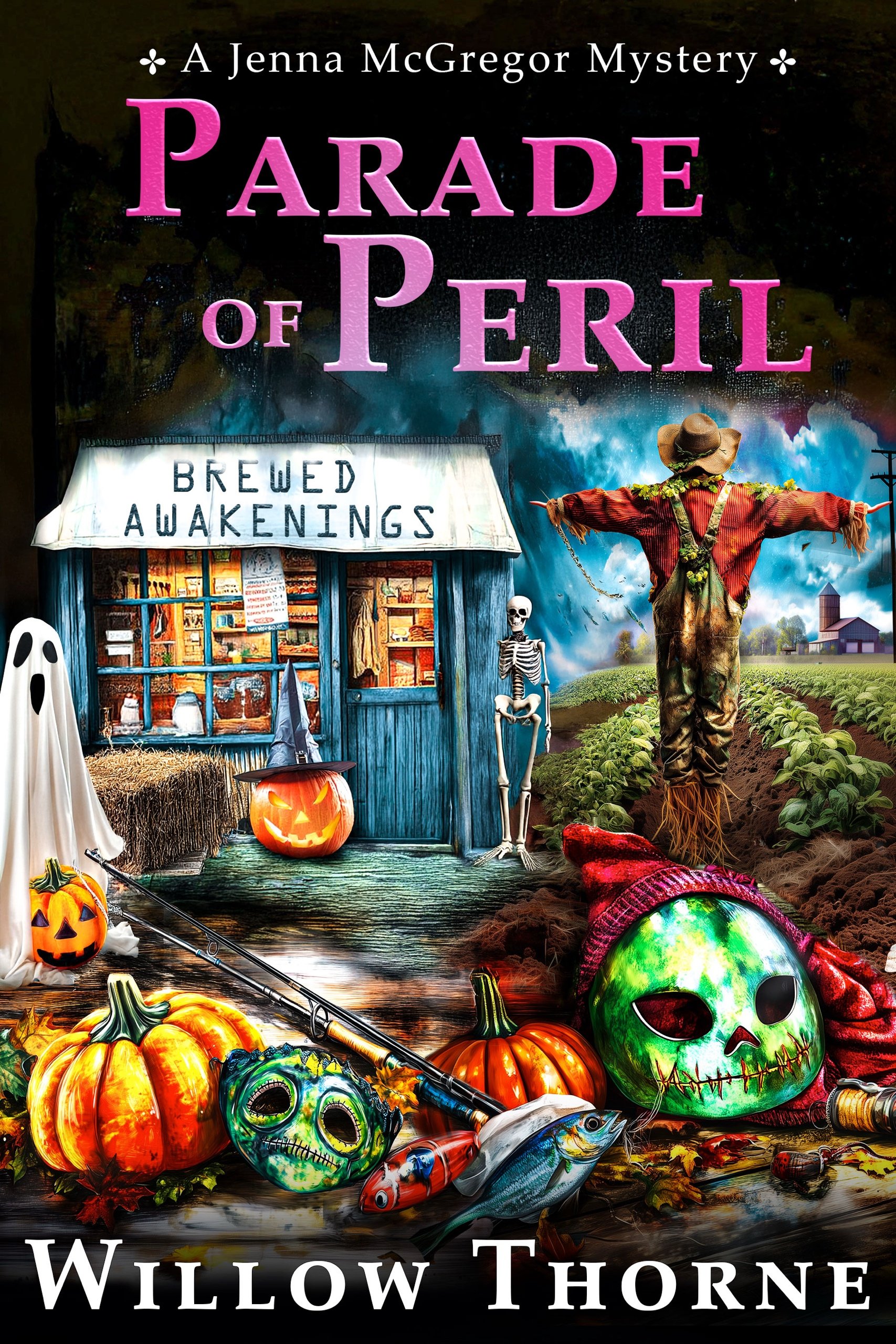A hometown troublemaker turns up dead in a scarecrow costume. Then a second body appears right on Jenna's parade float. With gossip brewing faster than espresso and half the town tangled in secrets, Jenna, her glitter-loving best friend Lisa, and their unflappable neighbor Mildred must untangle a web of rivalries and revenge.